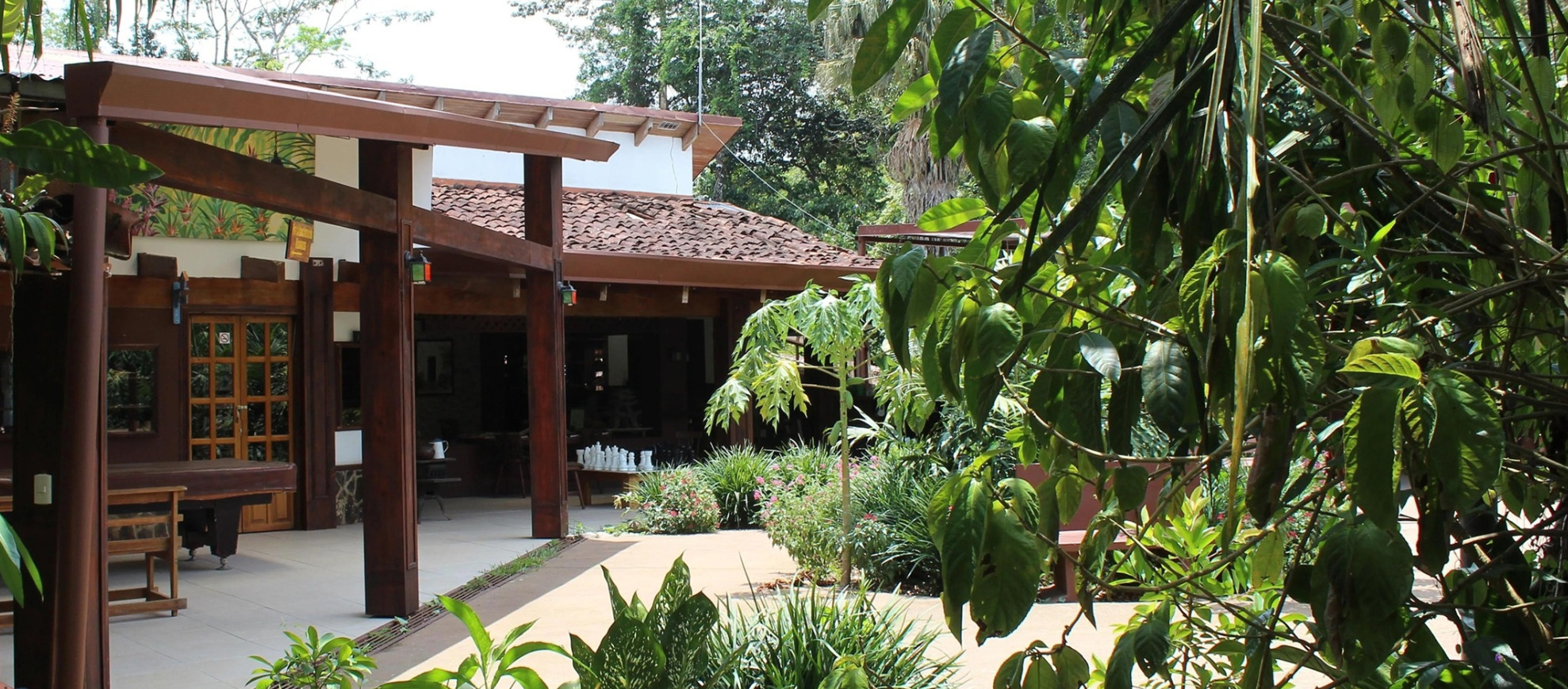 Die Anlage erstreckt sich über weitläufige tropische Gärten, in denen Heliconien, Gingers, Palmen und blühende Bäume eine üppige Kulisse bieten. Zur Ausstattung gehören ein Restaurant, eine Bar und mehrere Erholungsbereiche wie Veranden mit Hängematten und Schaukelstühlen. WLAN ist in den öffentlichen Bereichen vorhanden. Der Garten beherbergt ein kleines Museum, einen Schmetterlingsgarten, zudem gibt es Wege durch die Natur und gelegentliche Einsichten in biologisch regenerierte Flächen.